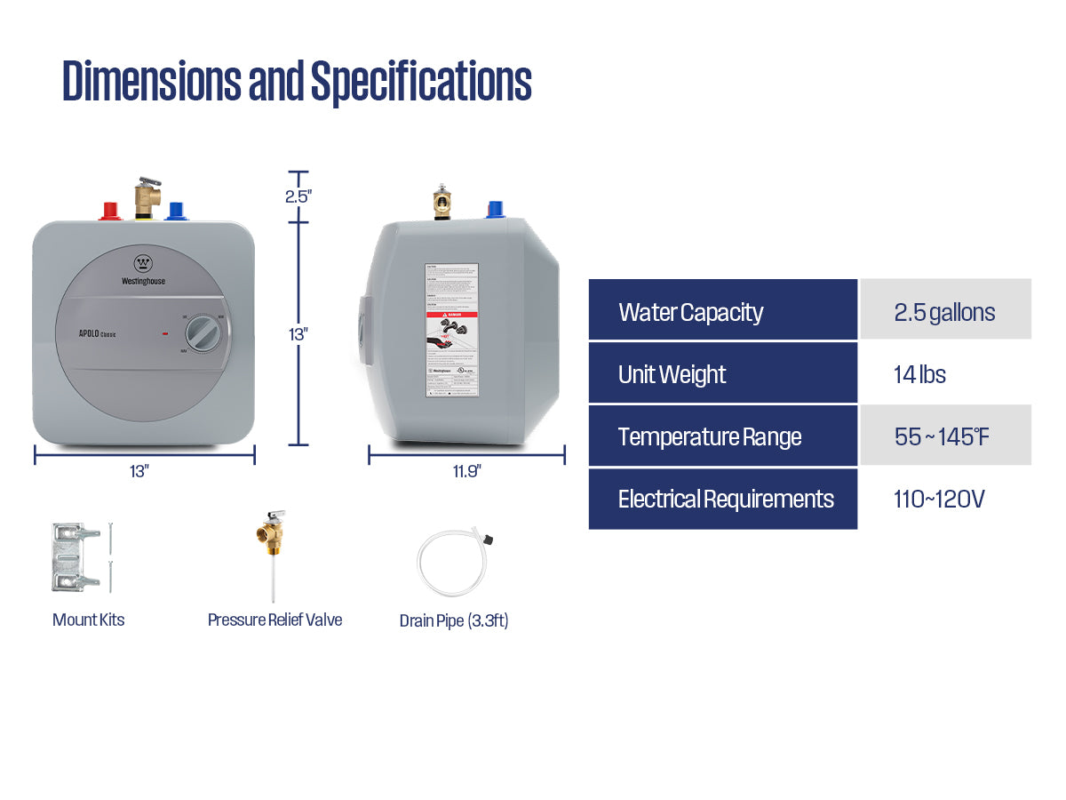 Water Heater Volume:2.5 Gallons