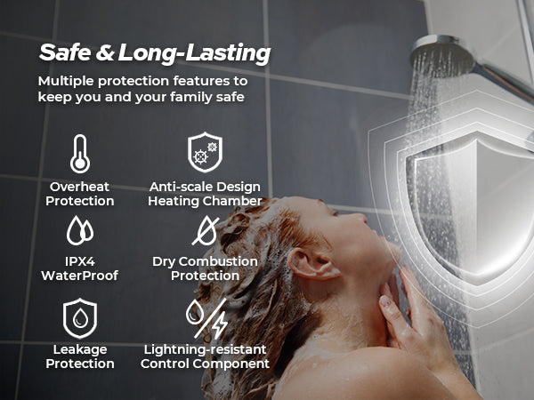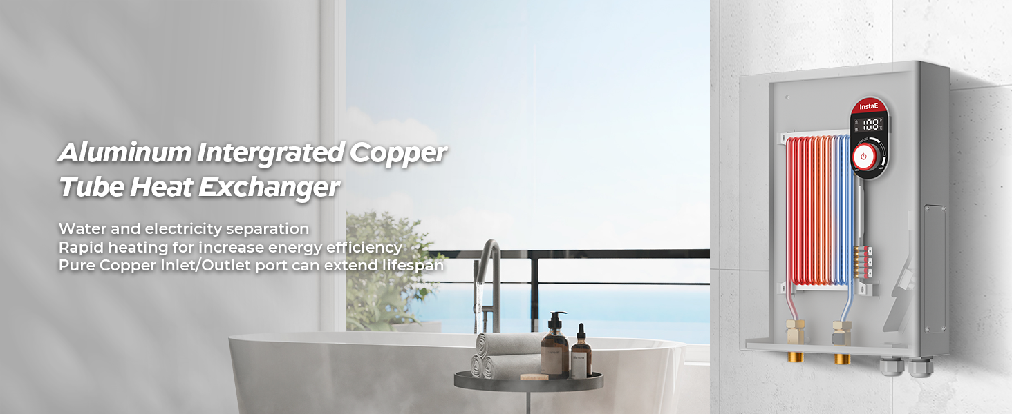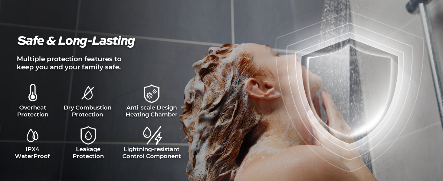 - 𝐄𝐧𝐞𝐫𝐠𝐲 𝐄𝐟𝐟𝐢𝐜𝐢𝐞𝐧𝐜𝐲 :Electric tankless water heater only heat water on demand, and achieve instant hot water. Unlike traditional tank water heaters, they don't need to constantly maintain a large volume of hot water, which results in significant energy savings over time.