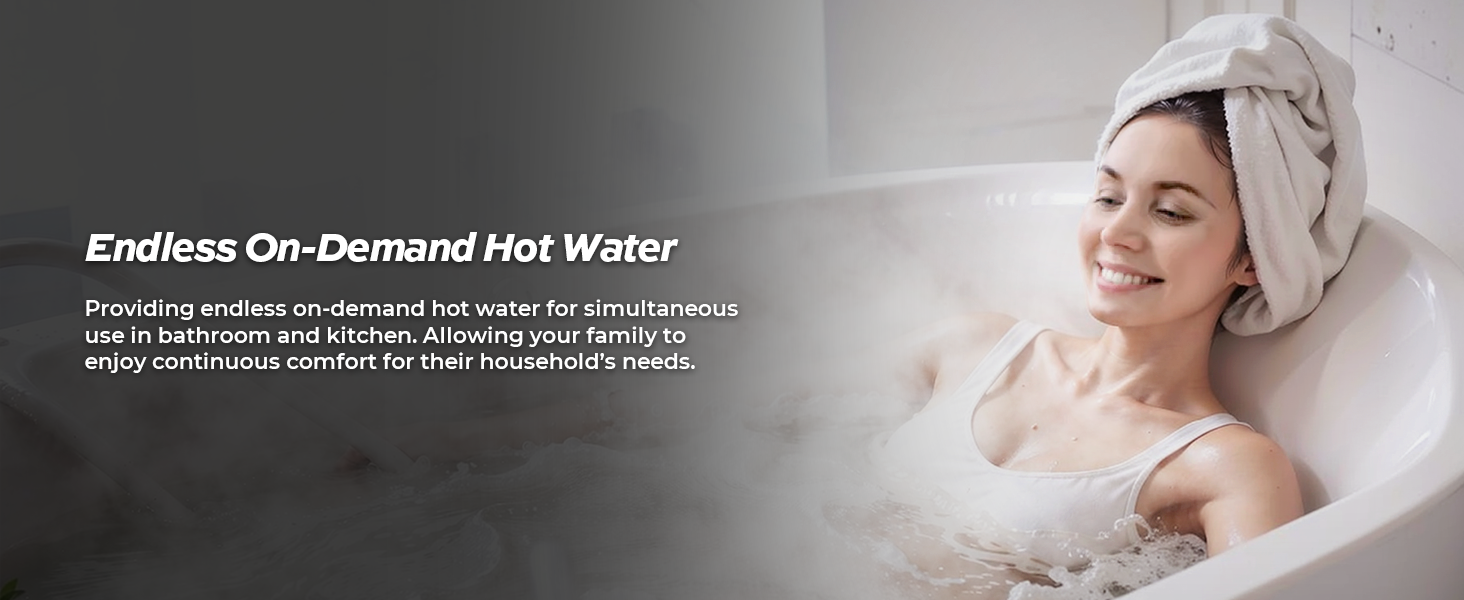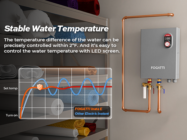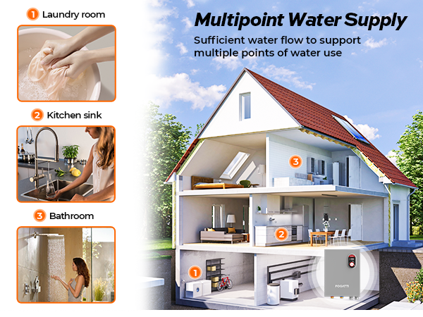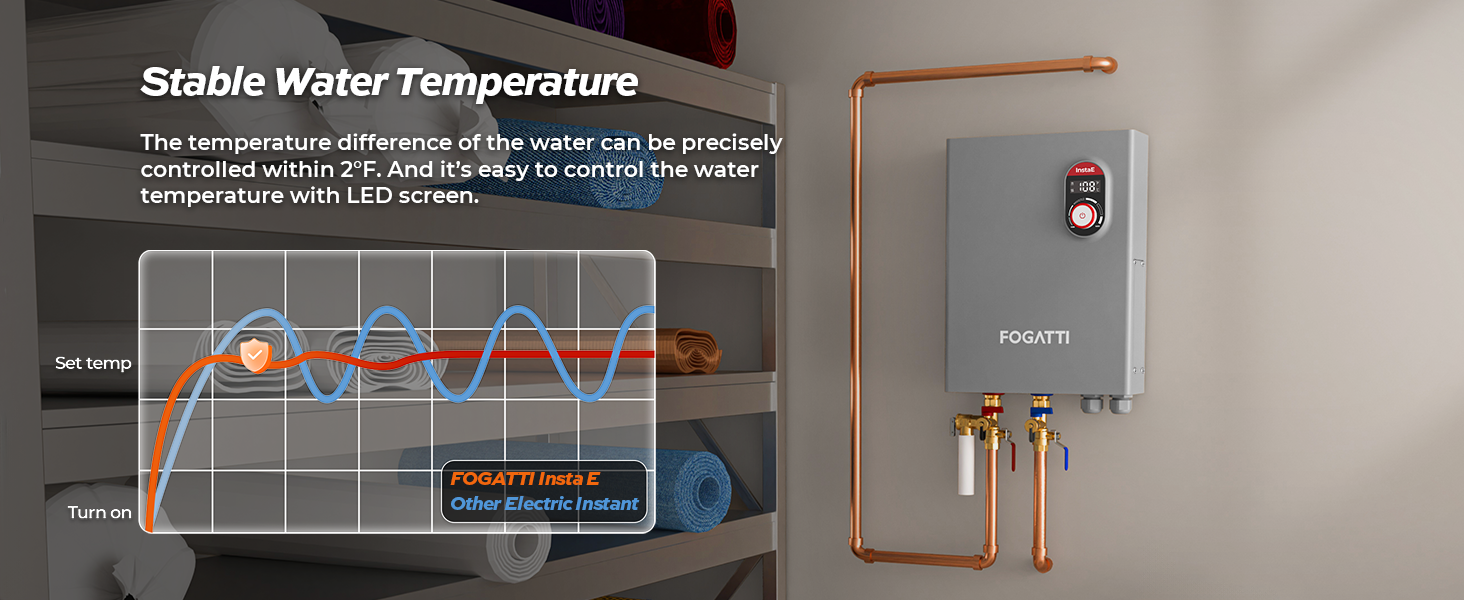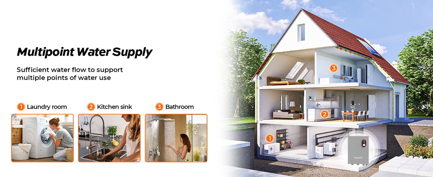 - 𝐔𝐧𝐥𝐢𝐦𝐢𝐭𝐞𝐝 𝐇𝐨𝐭 𝐖𝐚𝐭𝐞𝐫 𝐒𝐮𝐩𝐩𝐥𝐲: Fogatti electric tankless water heater can provide you the never running out of hot water, allowing your family to enjoy continuous comfort for their household’s needs in whole house.