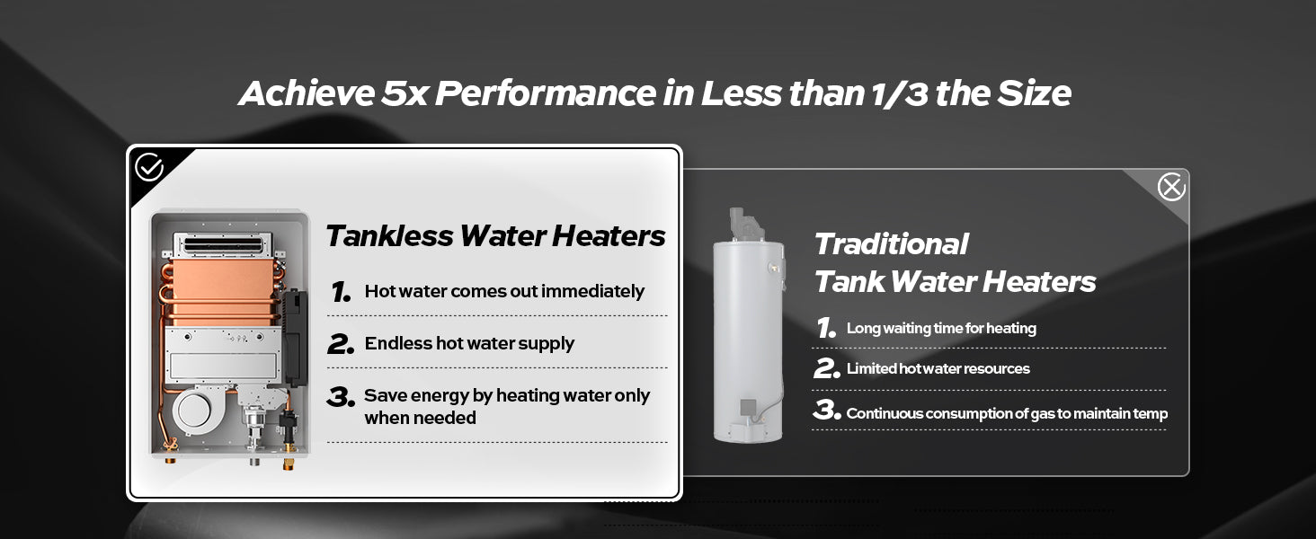 Firstly, it is small in size and can be installed in more places. Secondly, it can realize the output of endless hot water, and it has low maintenance frequency, which saves more time and money.