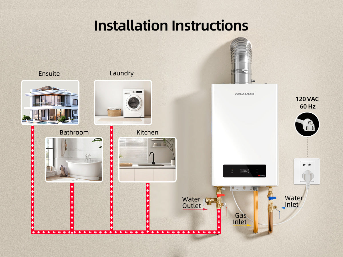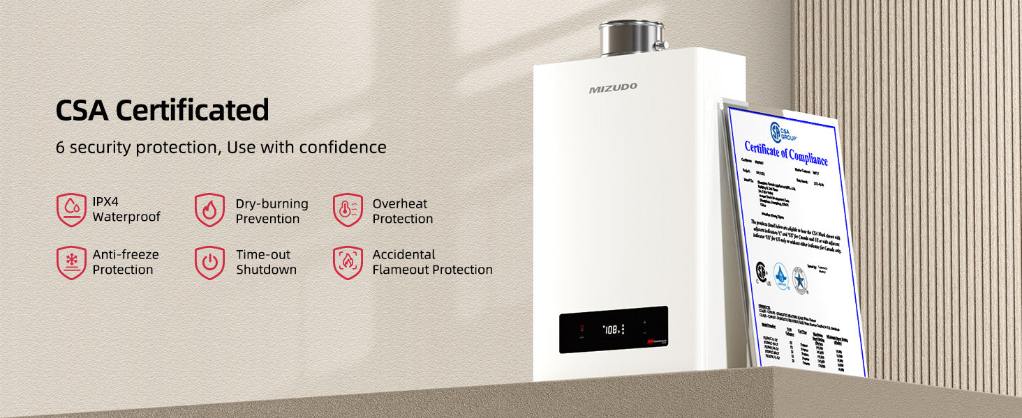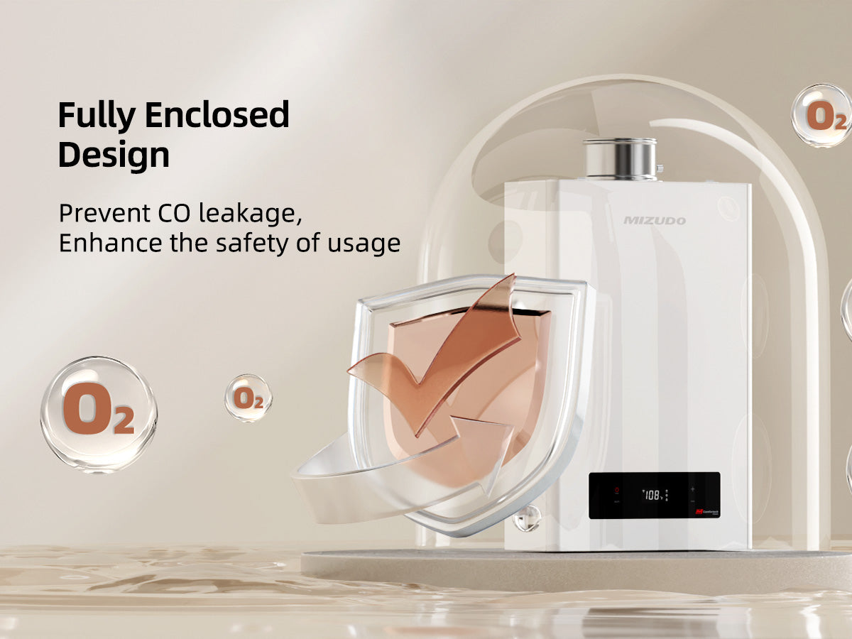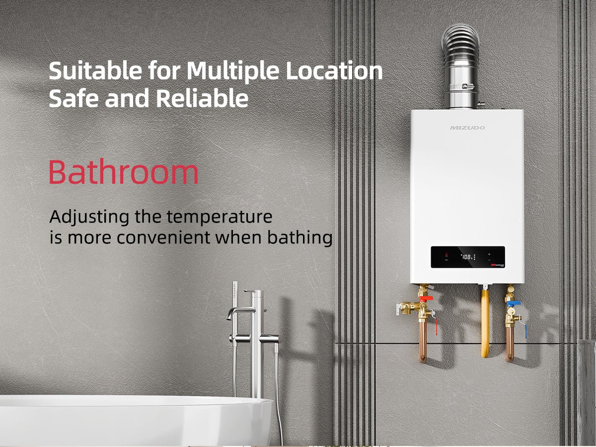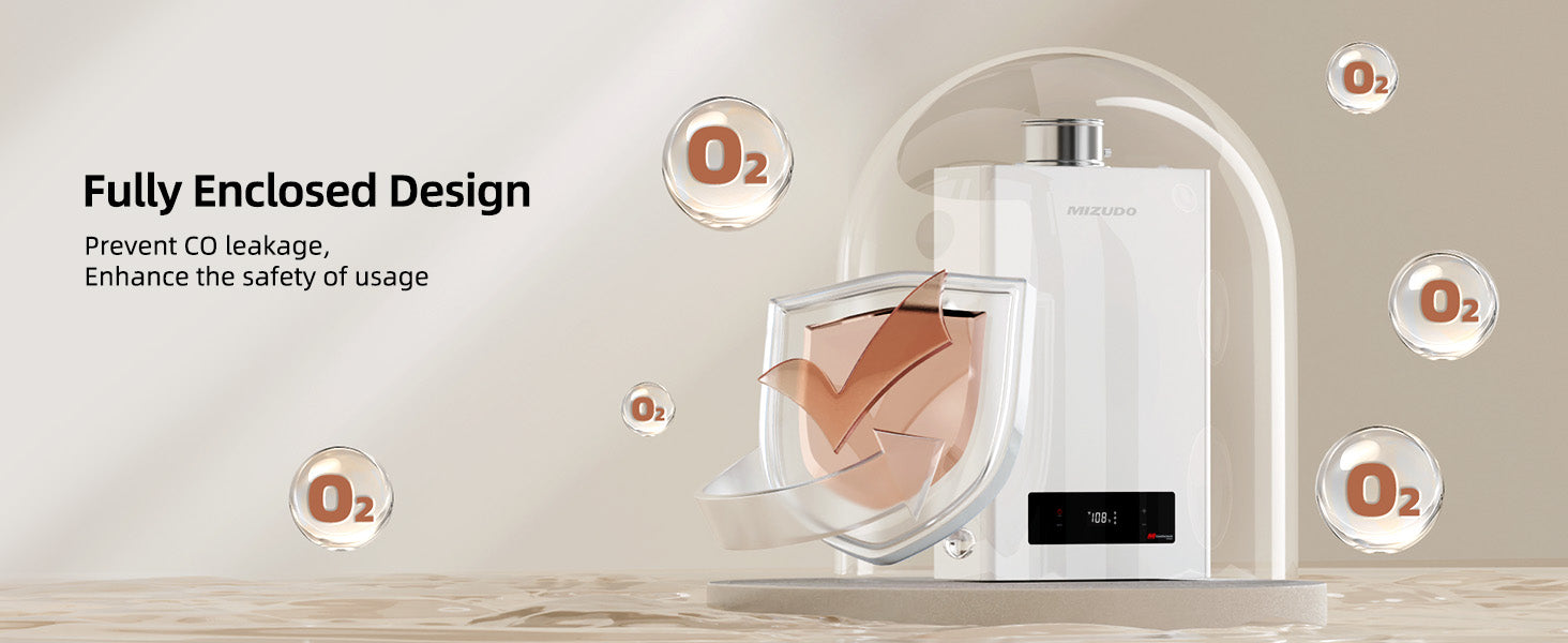 - Advanced Sealed Combustion System: Mizudo tankless water heater features a closed combustion design that draws external air for operation, preserving indoor air quality without affecting your home's environment.