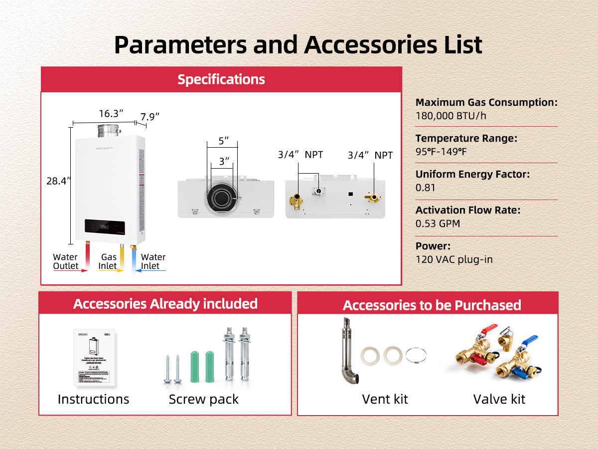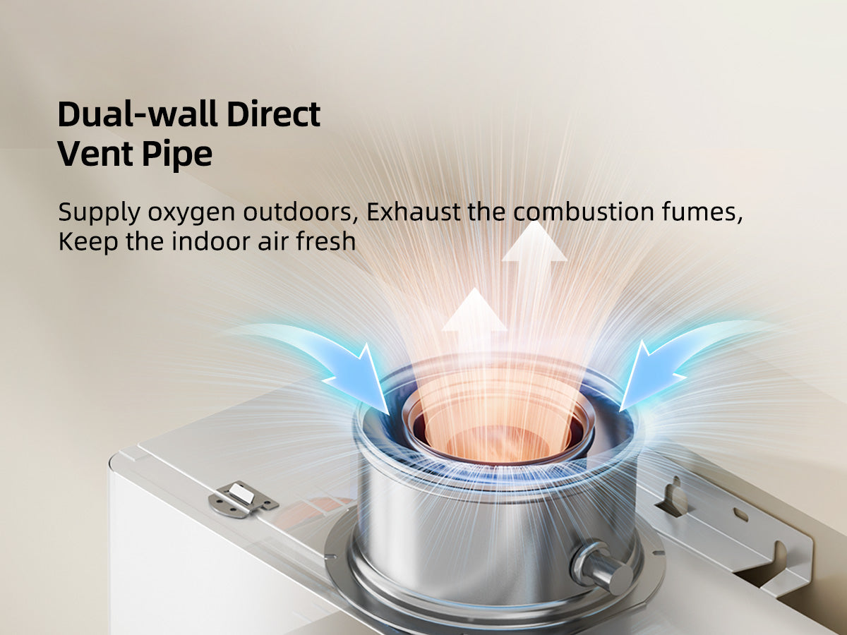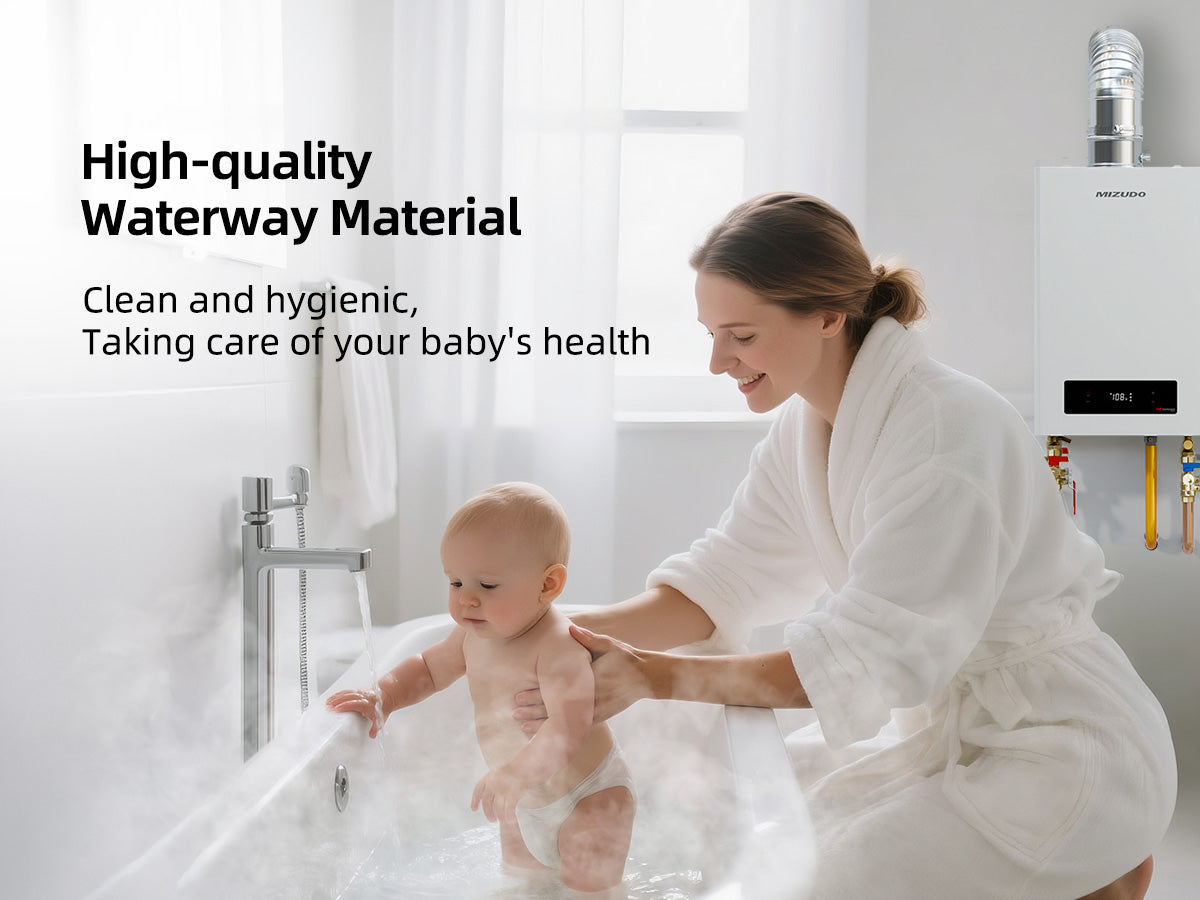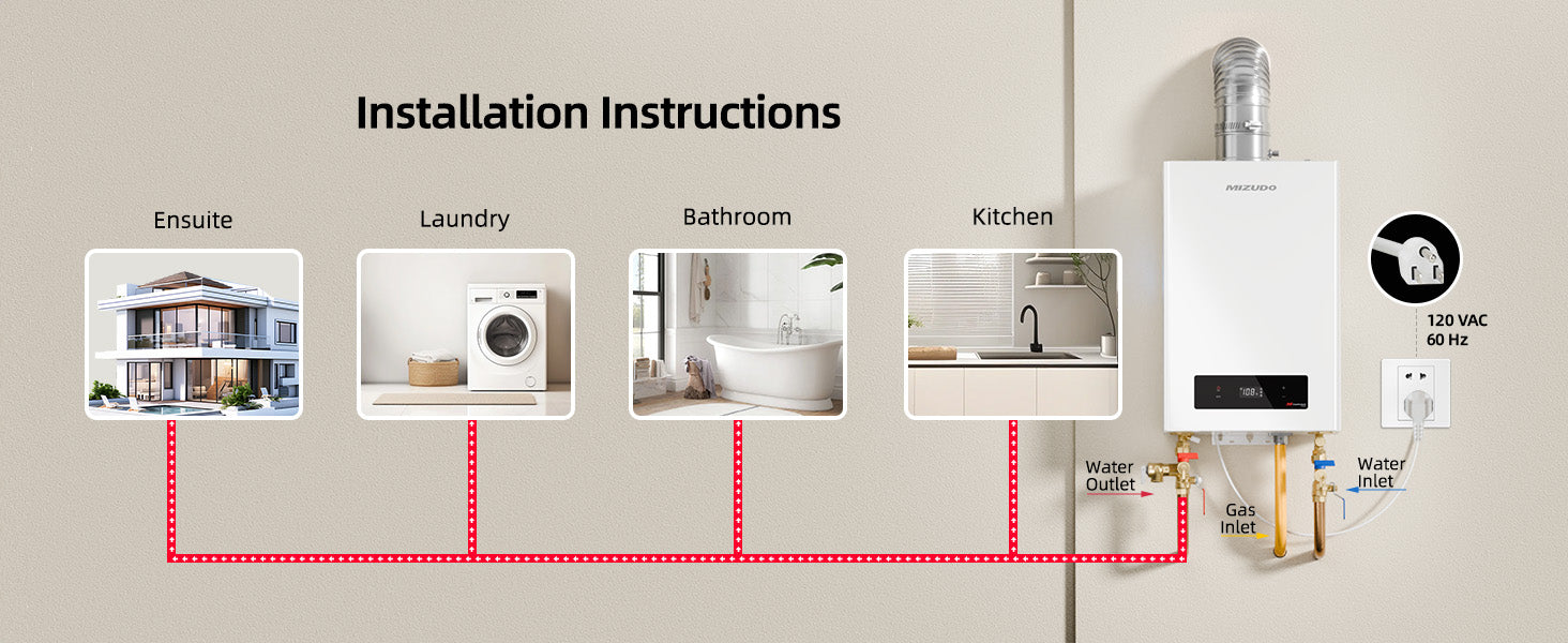 - Advanced Sealed Combustion System: Mizudo tankless water heater features a closed combustion design that draws external air for operation, preserving indoor air quality without affecting your home's environment.