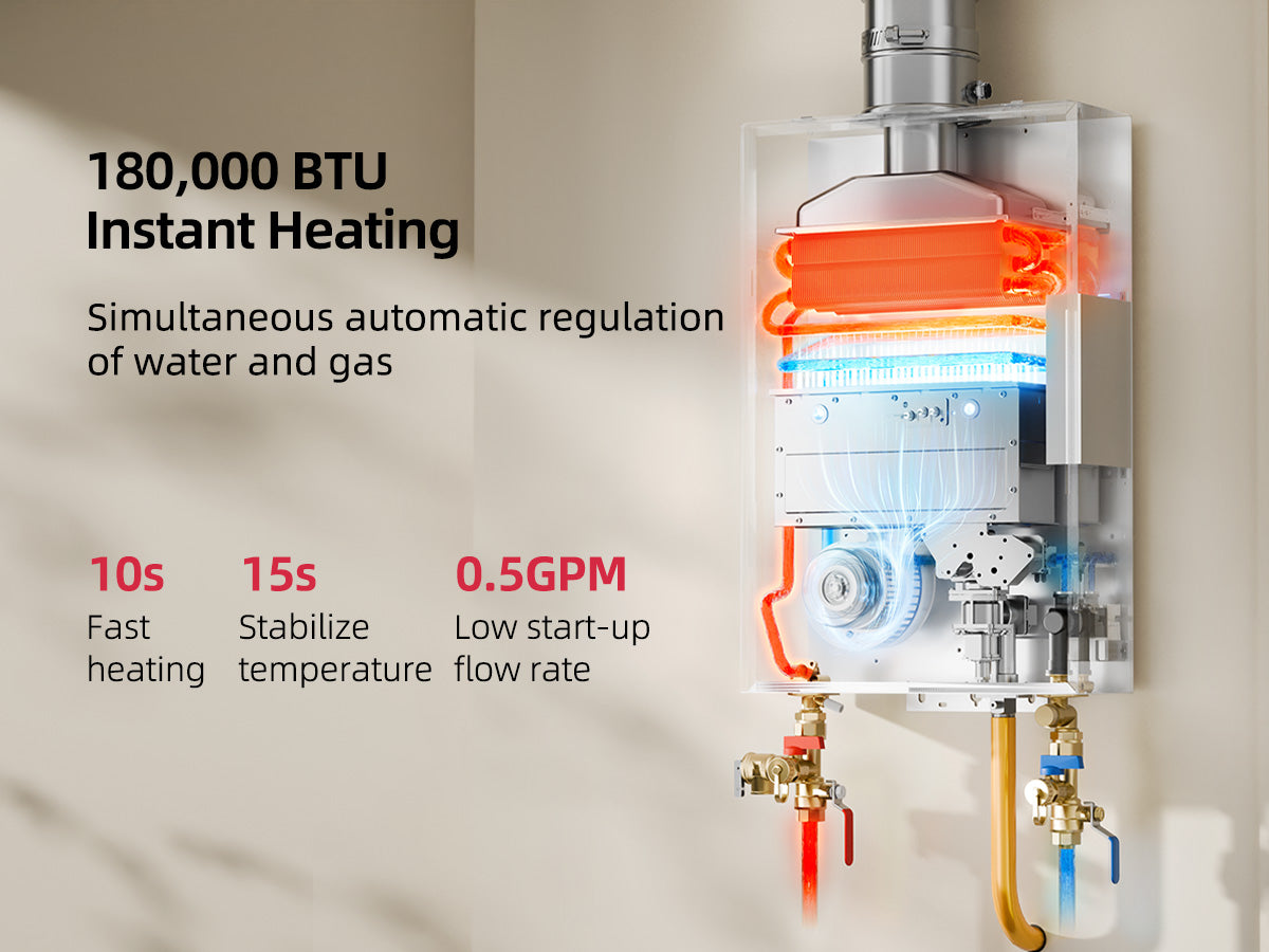- Durable Copper Construction: Mizudo's oxygen-free copper heat exchanger ensures superior thermal conductivity, reduce heat loss, high efficiency and durability.