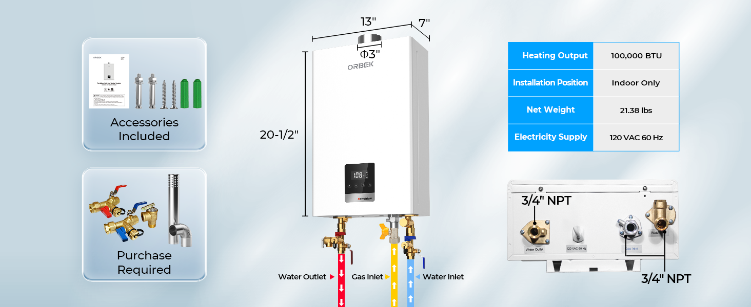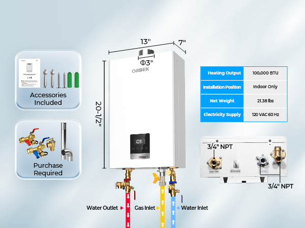 The part that needs to be installed together is a valve Kit with a 150PSI pressure relief valve (vent pipe and valve kit NOT included in the product), while other parts can be selected based on your situation.