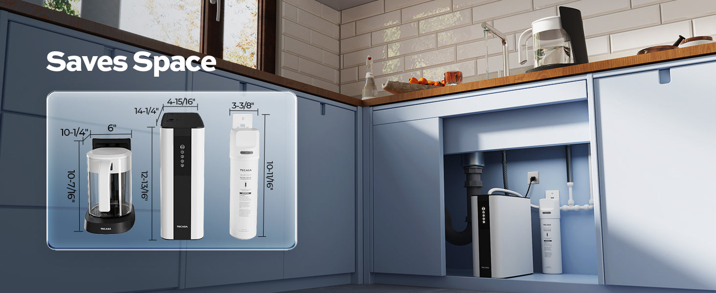 Space-Saving Option: This unique RO water filtration system places the filter system under the sink and the pitcher on the countertop, making it suitable for any space. Unlike most bulky under-sink reverse osmosis water filters on the market, this system is a great space-saving option.