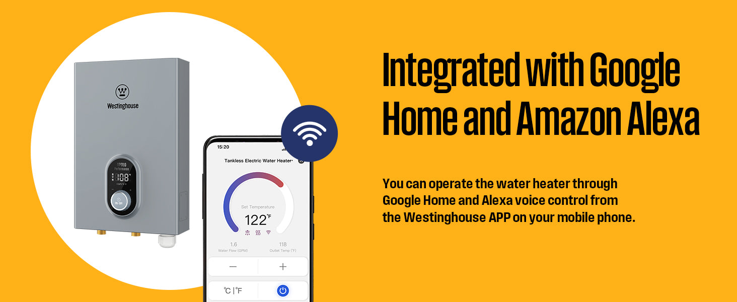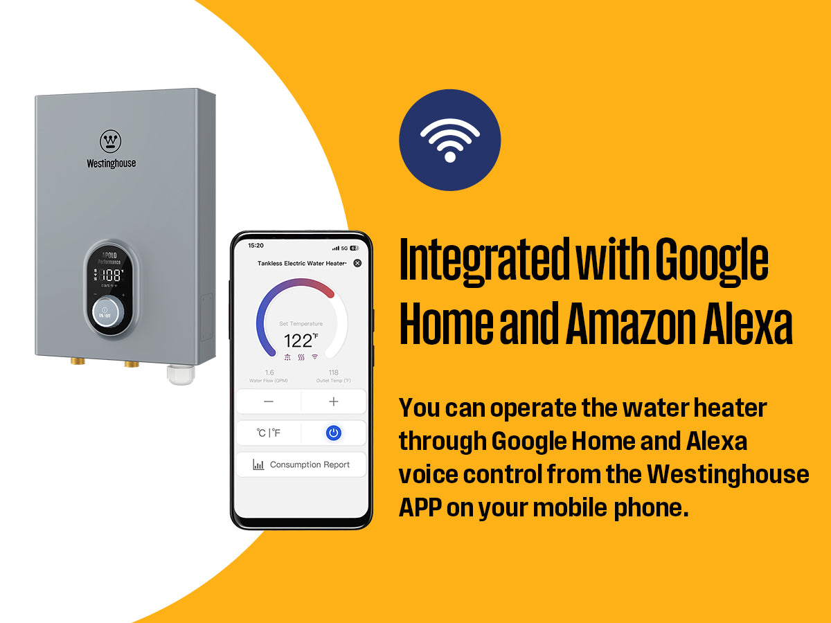 - 【SMART WI-FI VOICE CONTROL】Remotely control water temperature via the app or voice commands (Alexa & Google Home compatible). Adjust settings in precise 1° increments from 86°F to 140°F. An LED display shows real-time status for easy monitoring.