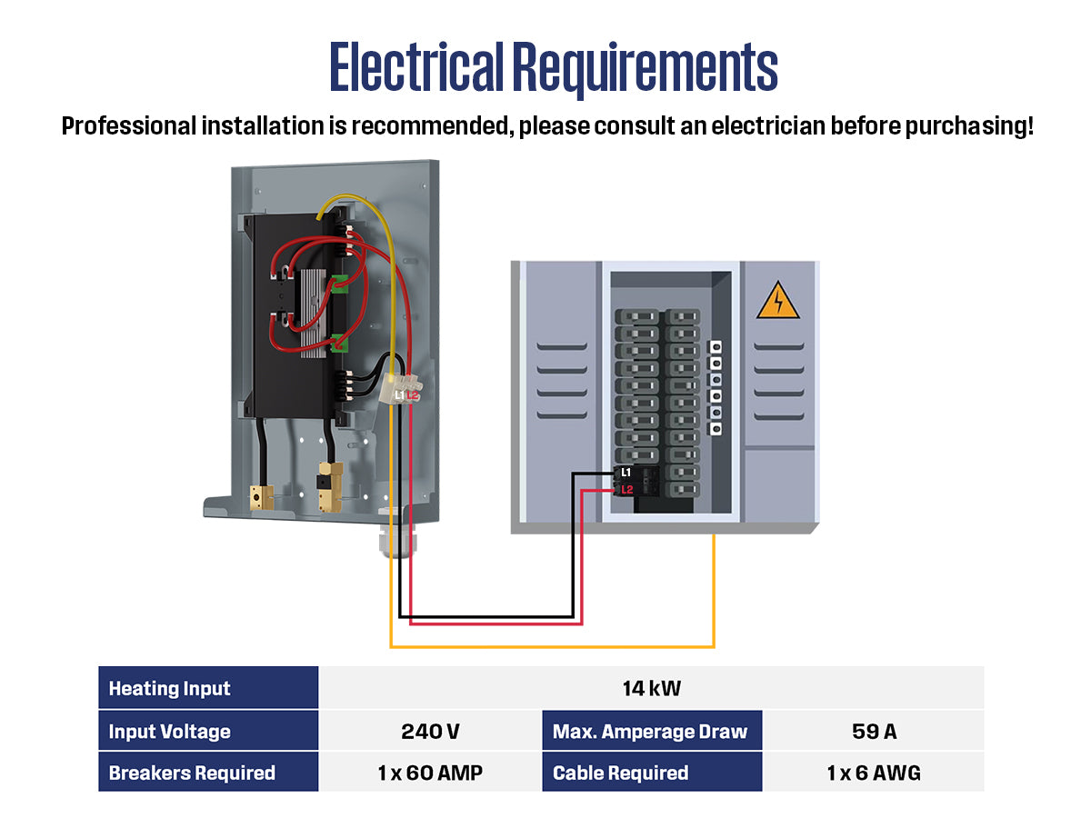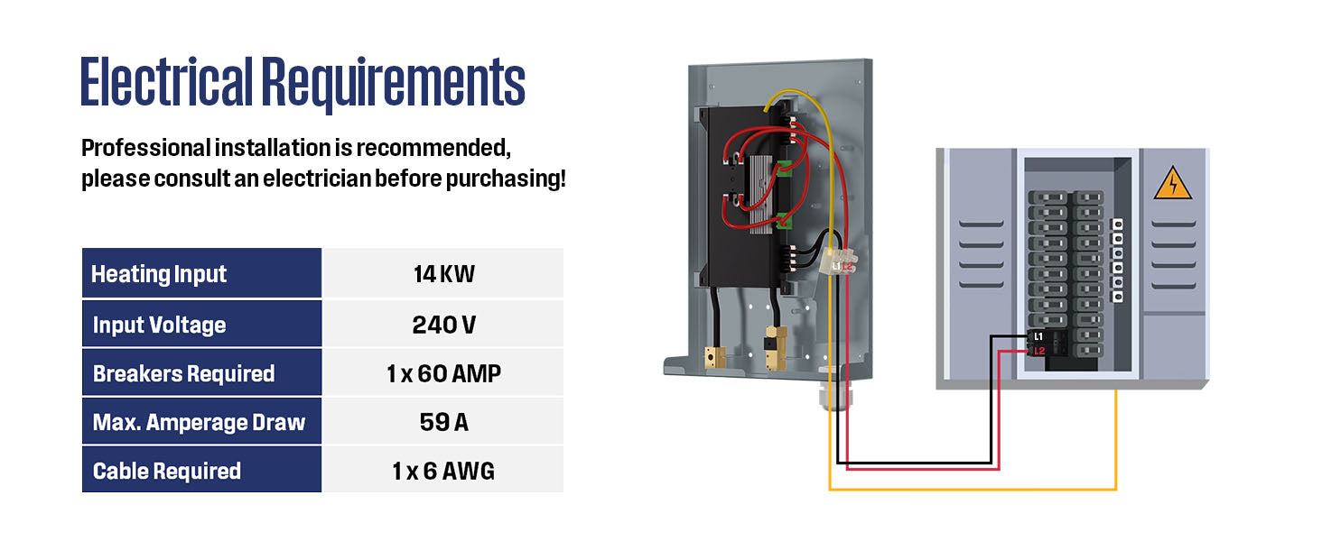 - 【SPACE-SAVING & EASY INSTALLATION】 Compact design (14.2"" H x 9.5"" W x 3.5"" D) mounts flush to walls, freeing floor space. Includes 1/2"" NPT connections and 60A breaker compatibility.