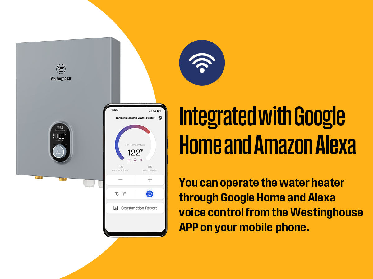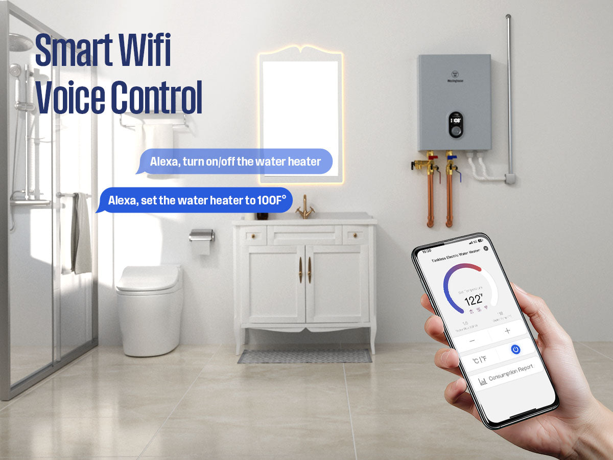 - 【SMART WI-FI VOICE CONTROL】Remotely control water temperature and restart the unit via app or voice commands (Alexa/Google Home compatible). Adjust settings from 86°F to 140°F in 1° increments. The easy-access rotary knob and clear LED display offer convenient local control and real-time status monitoring.
