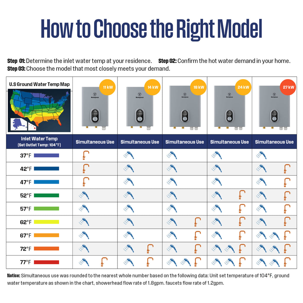 - 【POWERFUL & EFFICIENT 27kW PERFORMANCE】 Engineered for whole-house demands, this 240V unit delivers robust 27kW heating power. Compatible with standard residential electrical setup using 3 x 40 Amp (DP) breakers and 3 x 8 AWG wiring. Features 3/4" NPT water connections for optimal flow.